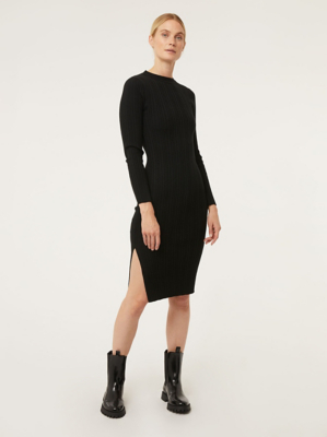 Black Ribbed Long Sleeve Knit Midi Dress Women George At Asda